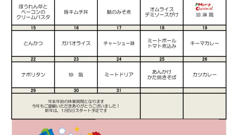 12月学食メニューです!