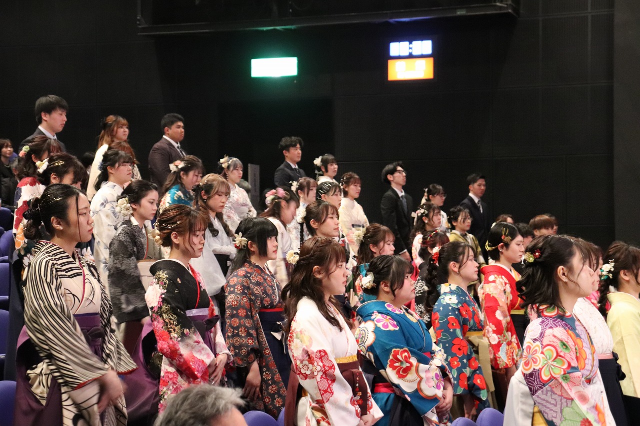 更新日:2025.03.17 お知らせ 令和6年度学位記授与式を挙行しました 3月14日 令和6年度学位記授与式を挙行しました。今年度は3期生 66 名が決意新たに学び舎を巣立っていきました。 3期生はコロナ禍で病院実習や学生活動など様々な制約のある中、勉学にいそしんだ仲間たちでもあり、卒業の喜びをかみしめていました。 学生のみなさんご卒業おめでとうございます! < 新しい動画をYouTubeチャンネルにアップしました! 一覧へ戻る 4月学食メニューです! >