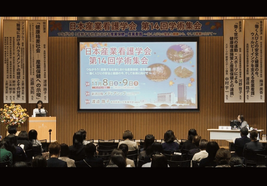 本学教員の渡邉路子准教授が学術集会長を務めた【日本産業看護学会 第14回学術集会】が、11月8日(土)・9日(日)に新潟日報メディアシップにて開催されました。