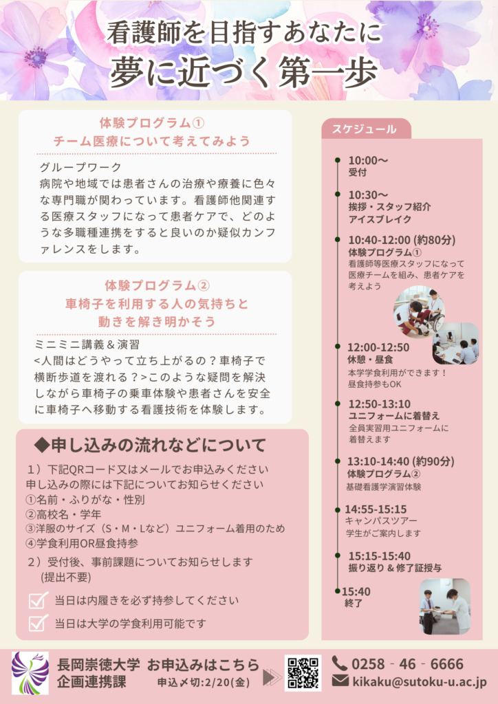 この春から、本学の「看護体験」は