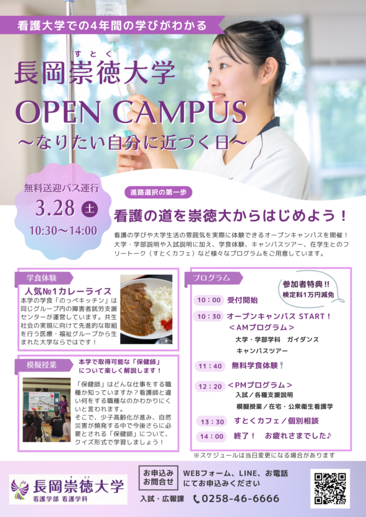 3月28日(土)春のオープンキャンパス開催します