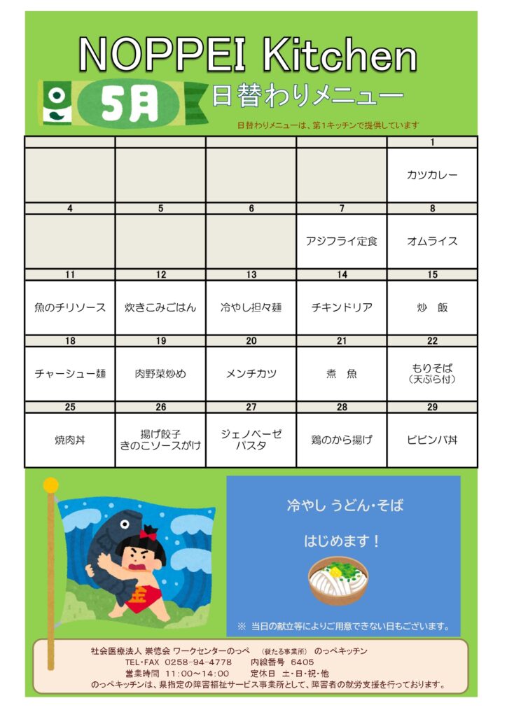 のっぺキッチンの5月のメニュー表を公開しました!