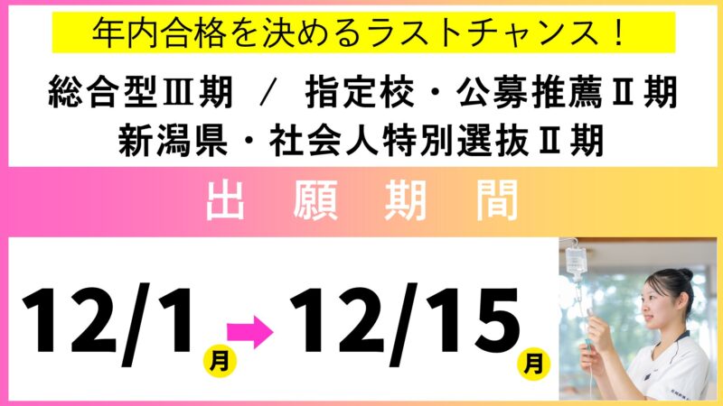 12/1(月)総合型Ⅲ期、指定校・公募推薦Ⅱ期、新潟県・社会人特別選抜Ⅱ期出願受付スタート!